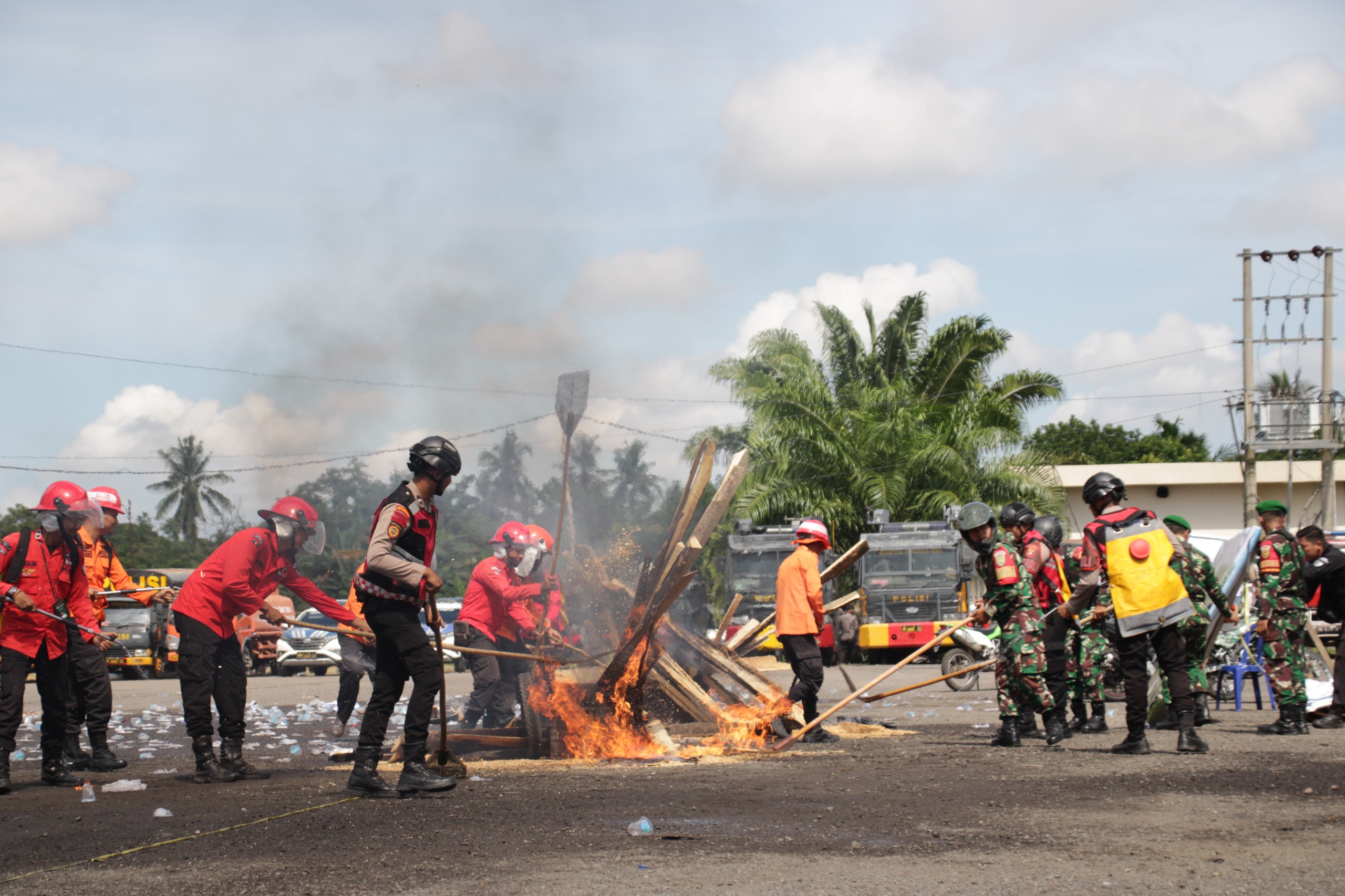 Simulasi berskala besar ini dipimpin langsung oleh Kapolda Sumsel, Irjen Pol Dr. Sandi Nugroho, S.I.K., S.H., M.Hum., dengan melibatkan ratusan personel gabungan dari unsur TNI, Polri, Badan Penanggulangan Bencana Daerah (BPBD), Manggala Agni, serta partisipasi elemen masyarakat.