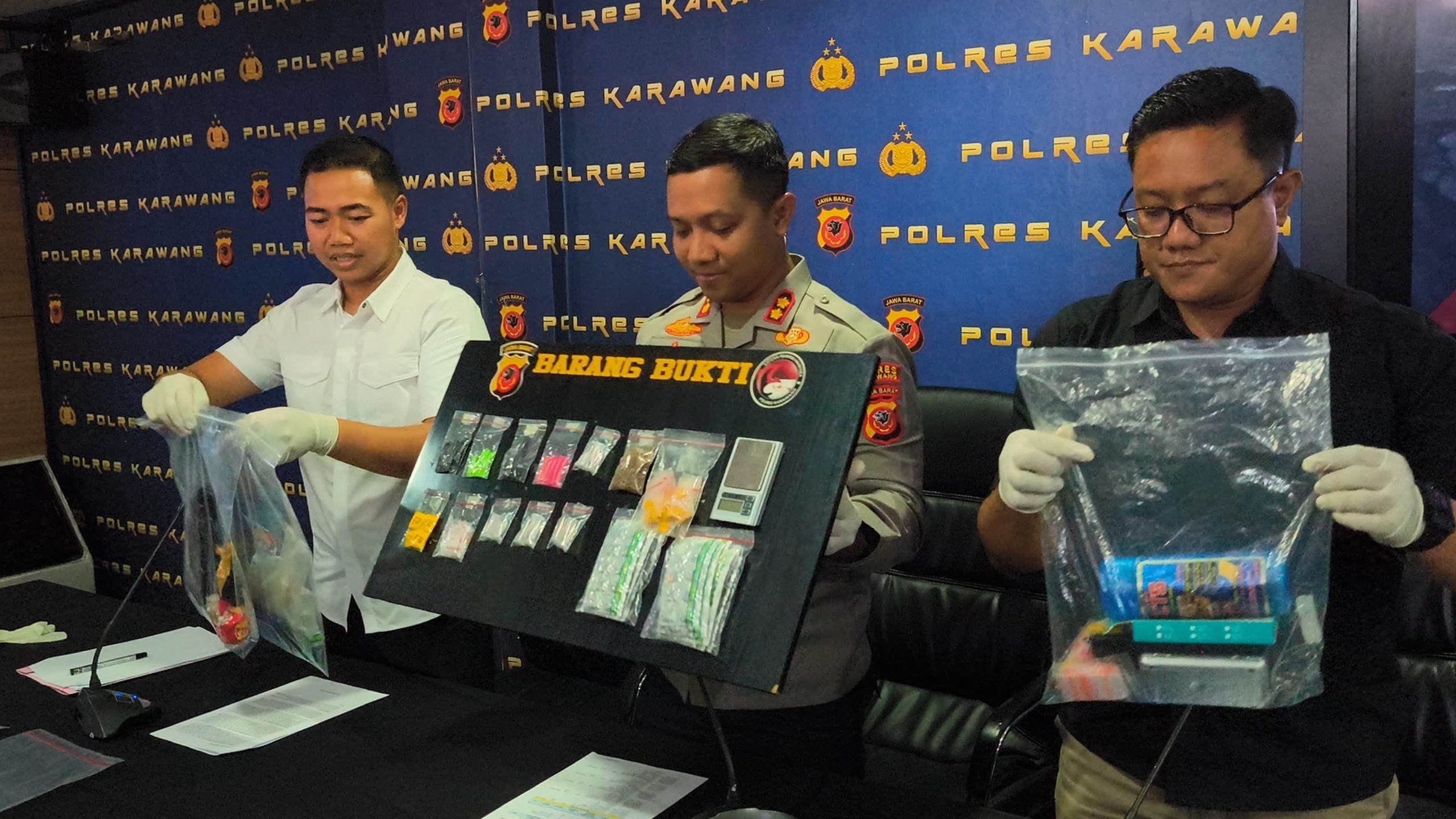 Barang bukti tersebut merupakan hasil pengungkapan dari berbagai lokasi di wilayah hukum Karawang, yang diduga menjadi titik distribusi dan peredaran narkotika.