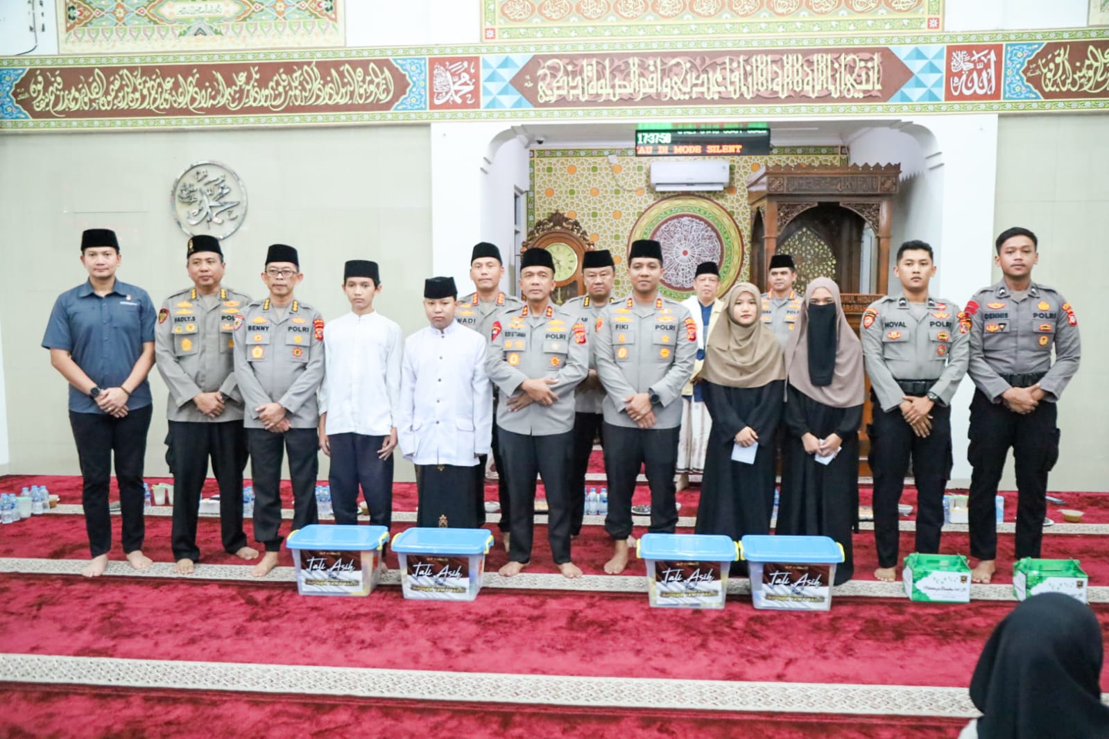 Usai salat Maghrib berjamaah, kegiatan dilanjutkan dengan penyerahan santunan kepada anak-anak yatim piatu. Secara simbolis, Kapolda Jabar menyerahkan bingkisan dan tali asih kepada perwakilan anak-anak yatim yang hadir. Momen tersebut berlangsung haru dan menjadi puncak acara.
