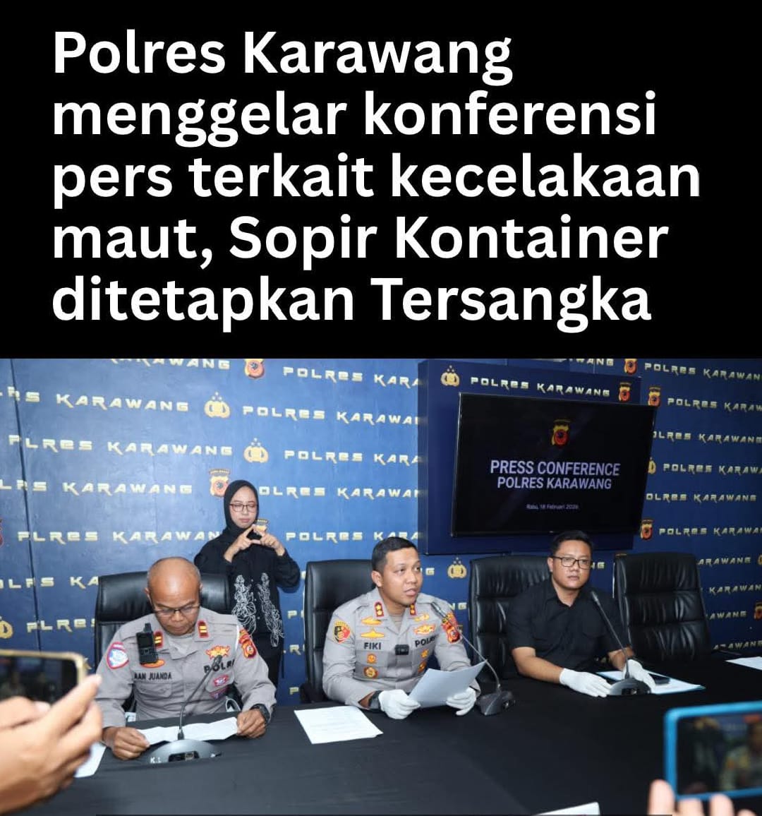 KARAWANG, Siklusnews,com,– Polres Karawang menetapkan sopir truk trailer berinisial HW sebagai tersangka dalam kecelakaan lalu lintas maut yang menewaskan tiga orang di Jalan Raya Tanggul Rawa gabus, Desa Kondang jaya, Kecamatan Karawang Timur, Kabupaten Karawang. Peristiwa tragis yang terjadi Minggu (15/2/2026) malam itu juga menyebabkan tiga korban lainnya mengalami luka-luka.